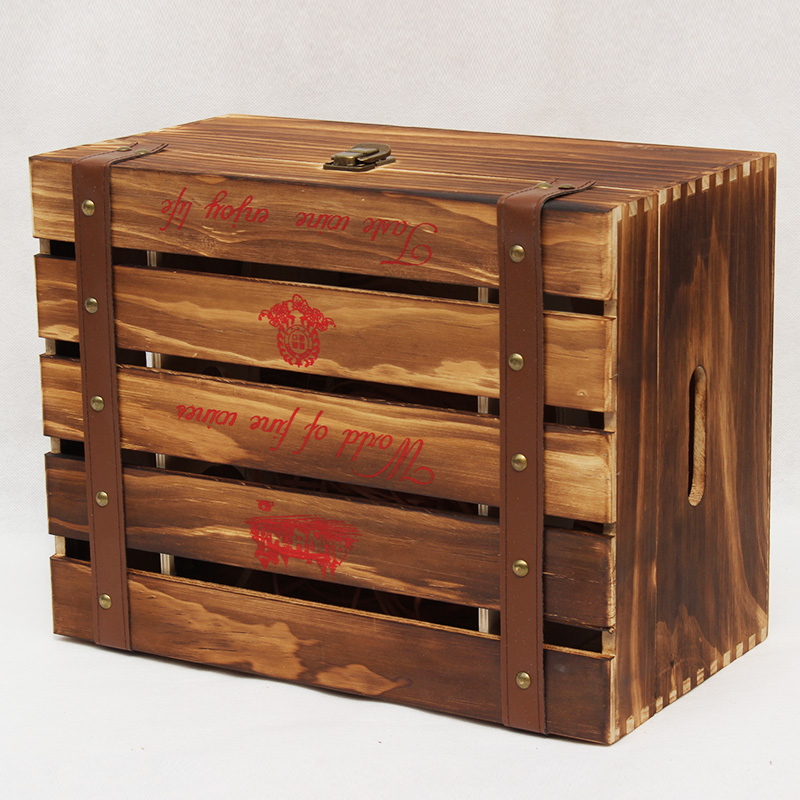 6瓶裝烤色紅酒木盒